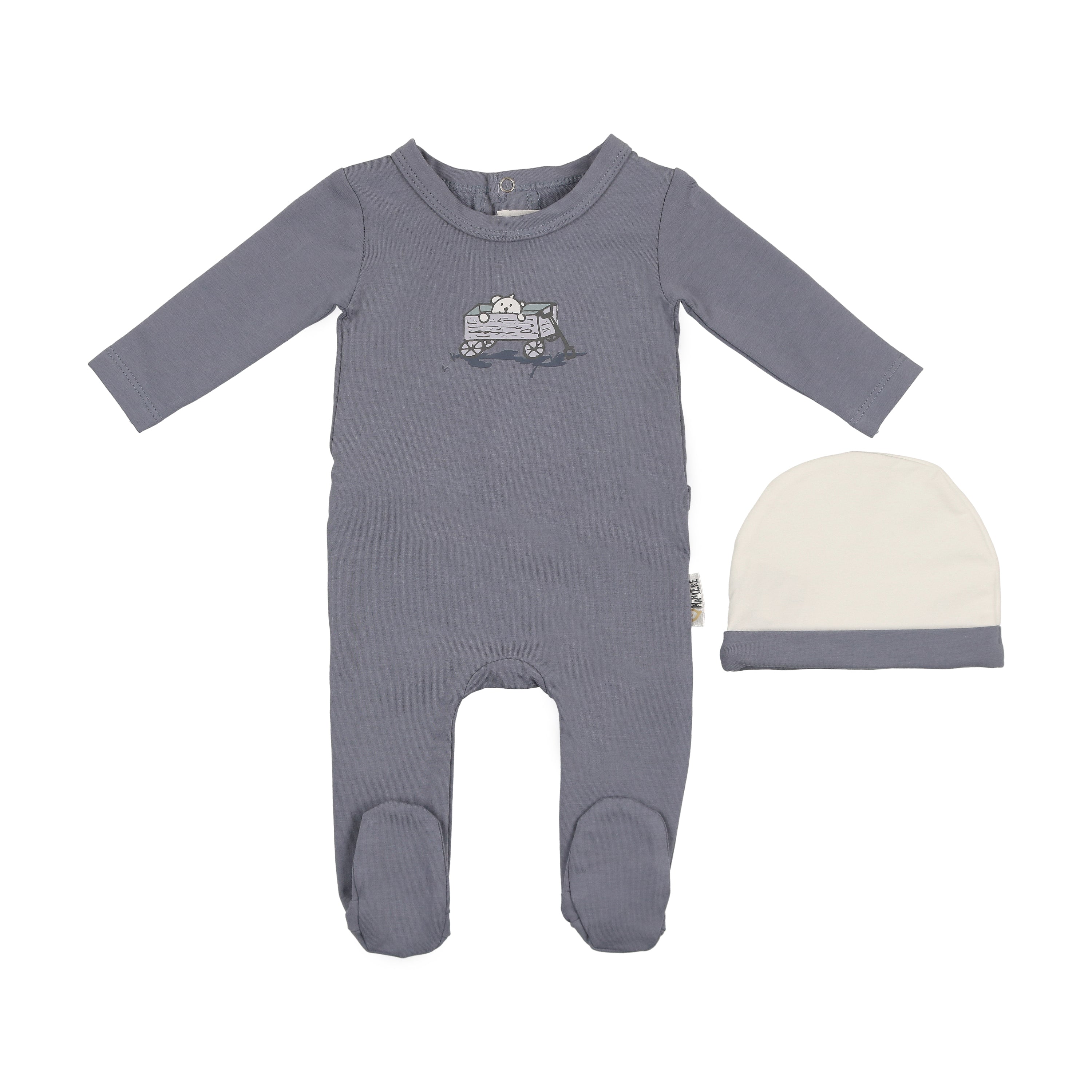 Manière Dusty Blue Teddy Wagon Footie