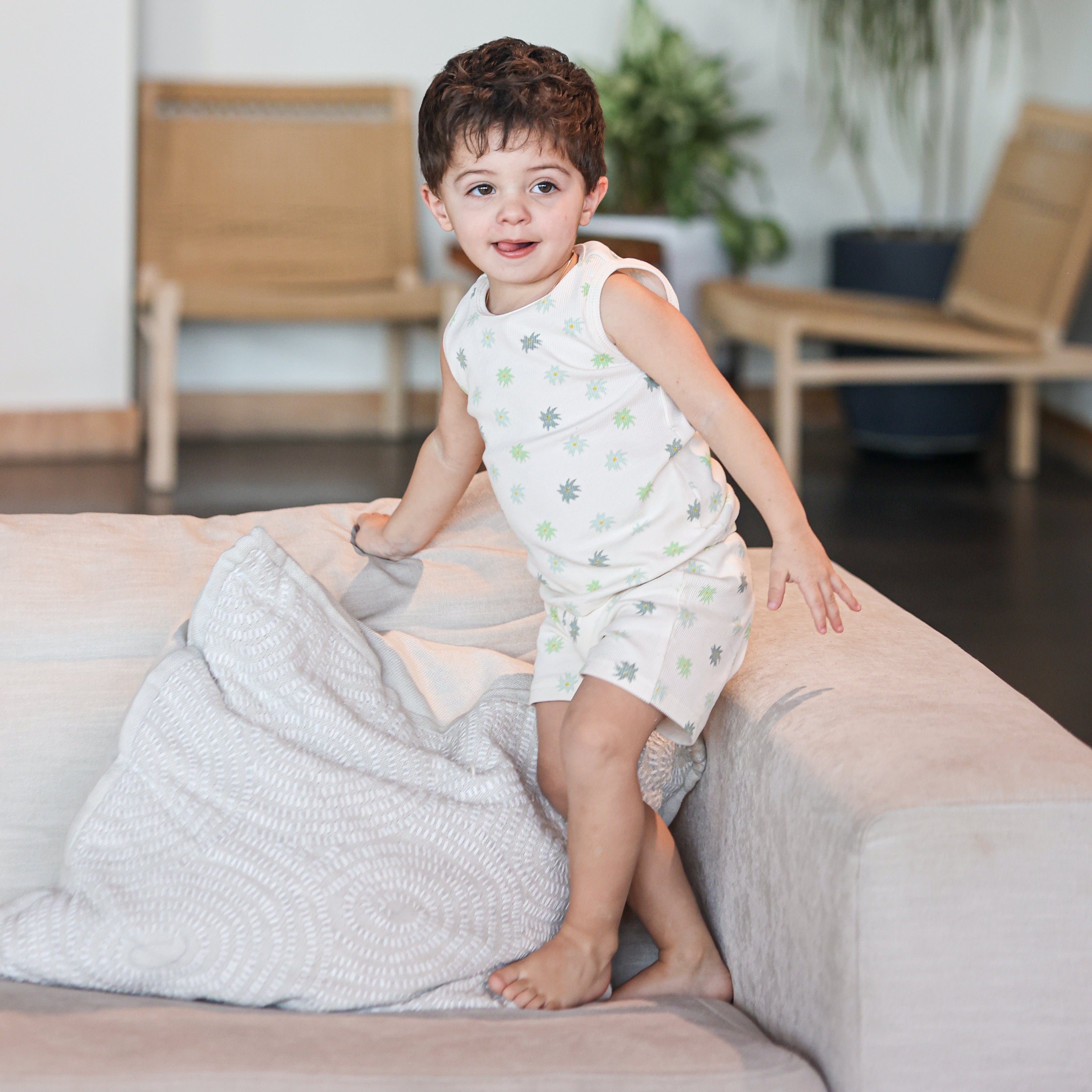 Montée by Manière Beige Floral Ribbed Two Piece Set - Boys