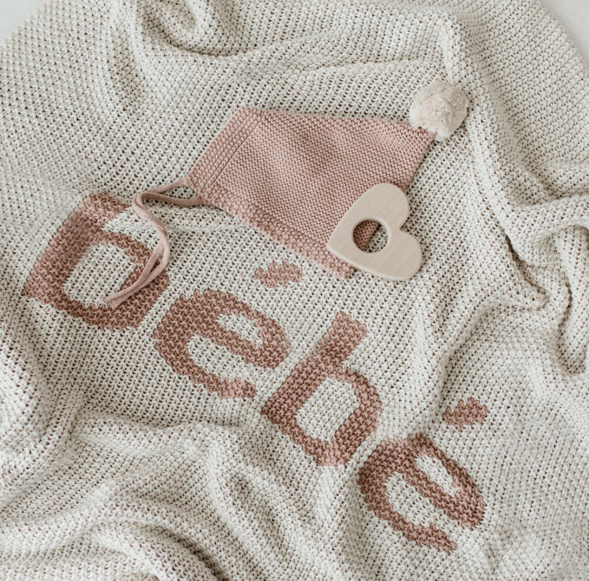 Featuring the word bebe in the center. This soft & chunky reversible blanket is a trendy favorite.