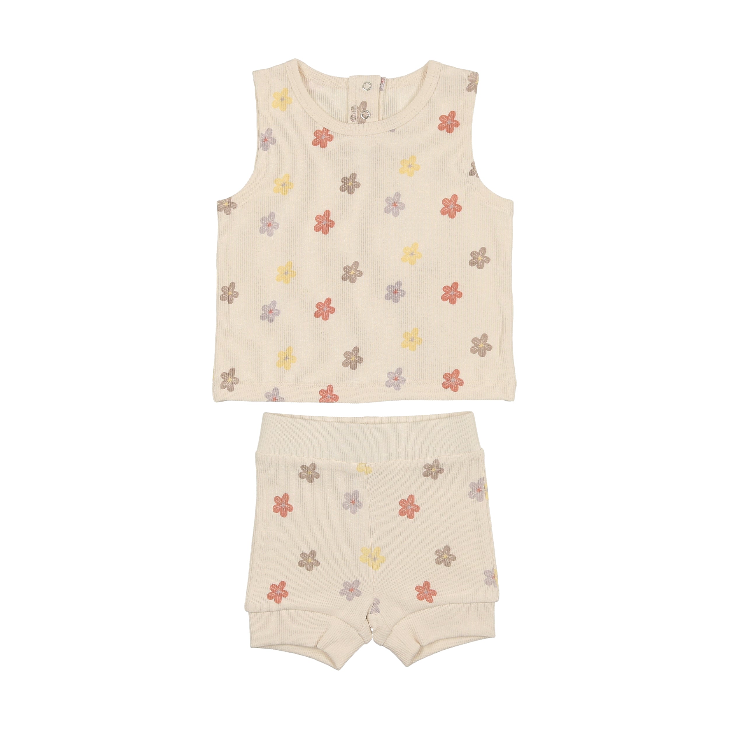 Montée by Manière Beige Floral Ribbed Two Piece Set - Girls